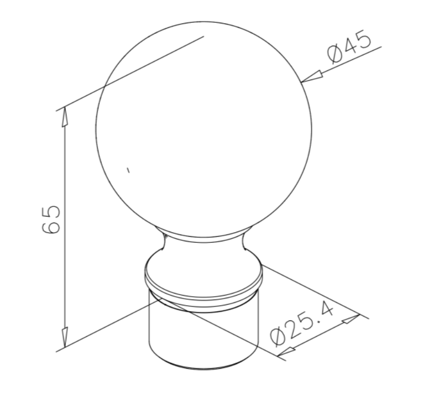Kuleformad ändpropp i mässing-look för Ø25,4 mm rör.