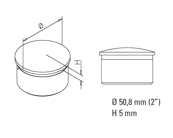 Rundad ändpropp för Ø50,8 mm rundrör. Tillverkad i stål med mässing-look yta. Passar som elegant avslutning för större rör i möbel- och inredningsprojekt.