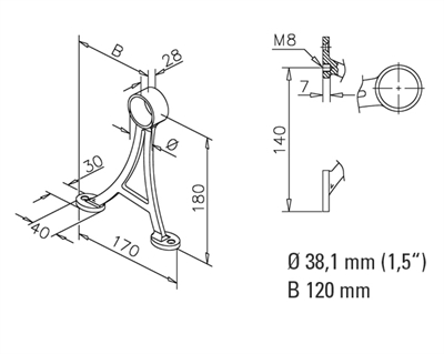 A-format väggfäste i mässing-look för Ø 38,1 mm rör.