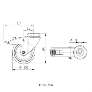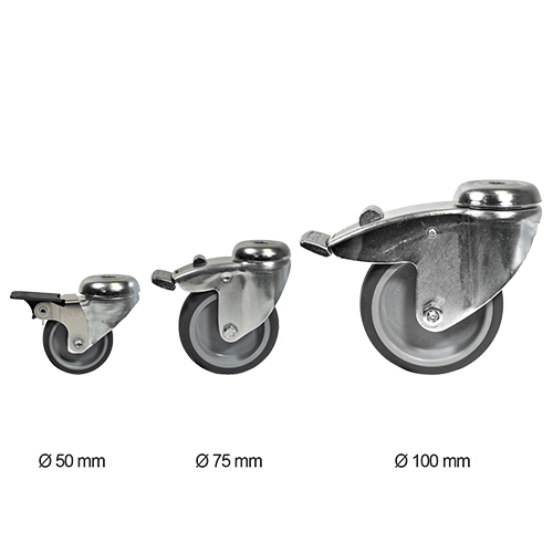 Hjul Ø100 mm i galvaniserat stål med broms. Ett extra stabilt och starkt hjul för större stativ, bord och konstruktioner där du behöver hög bärförmåga och enkelt vill kunna flytta runt utrustningen.