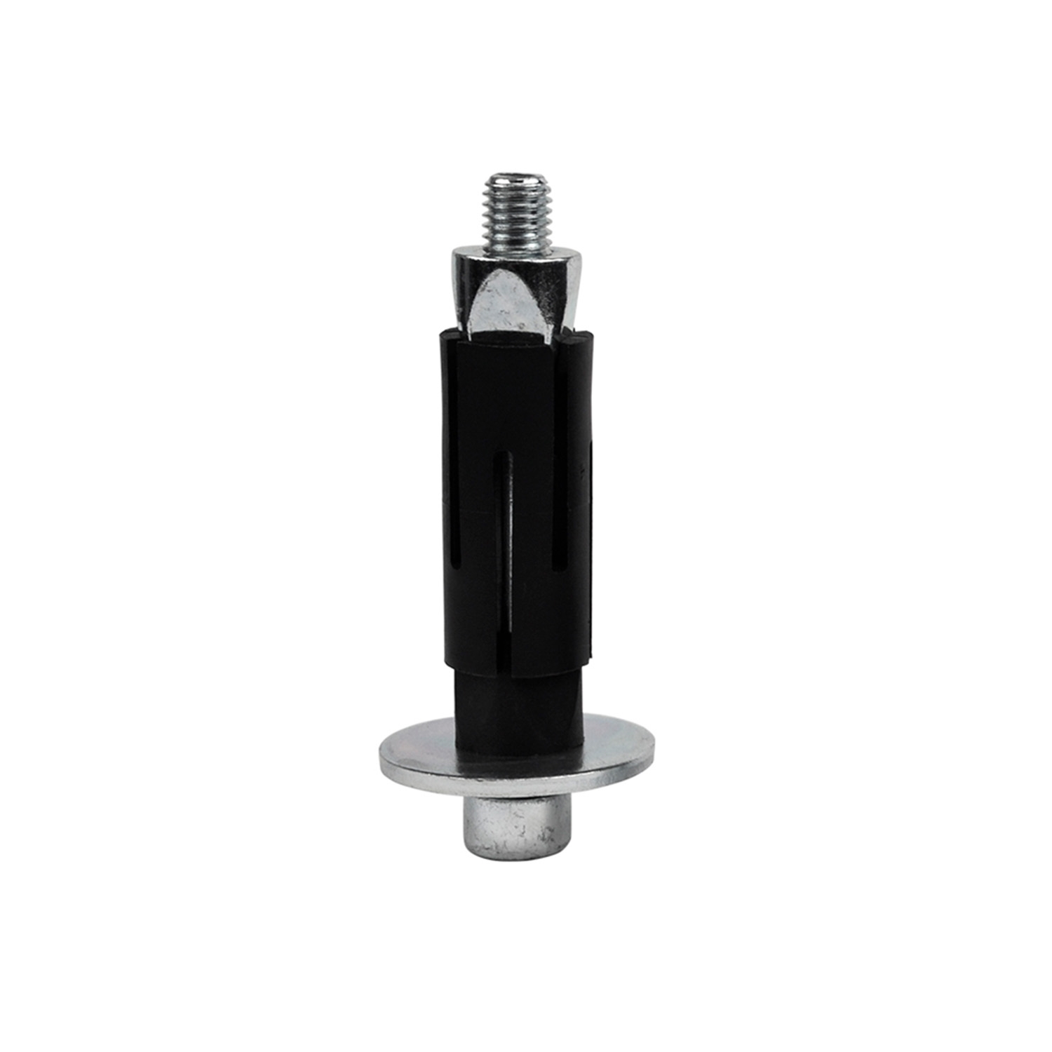 När skruven dras åt expanderar insatsen mot rörväggarna och låser hjulet stabilt på plats.